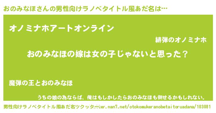 | 女子向けラノベタイトル風あだ名 | 『おのみなほの卵を拾いまして』 |