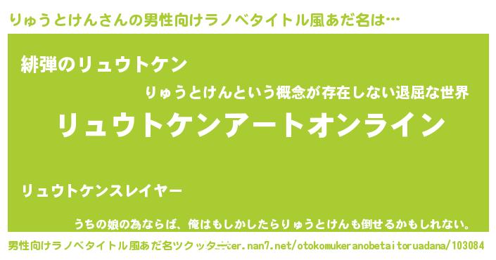 | ヒーロー風カッコイイあだ名 | 『スーパーリュウトケン』『仮面リュダー』 |