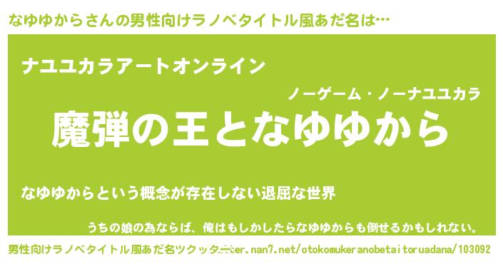 | 意味不明あだ名 | 『住所不定無職なゆゆから(81歳)』 |