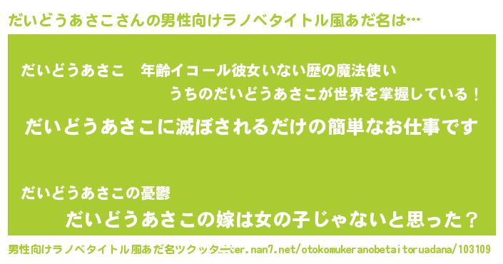 | 胡散臭い通販商品みたいなあだ名 | 『伝統あるペンダント…その名も「だいどうあさこ」』 |