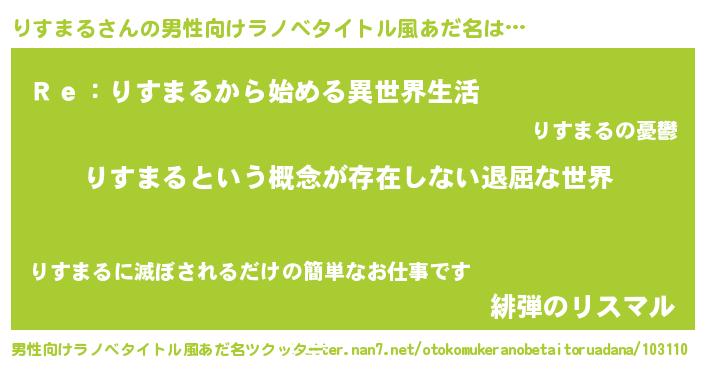 | 意味不明あだ名 | 『永久保存りすまる』『自称りすまる』 |