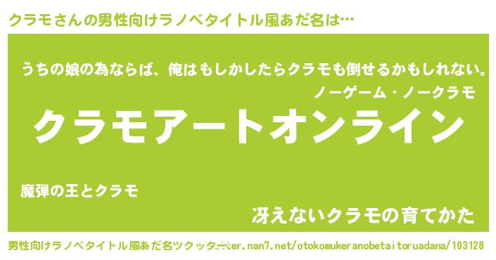 | 女子向けラノベタイトル風あだ名 | 『誰かこのクラモを説明してください! ~契約から始まるウェディング~』 |