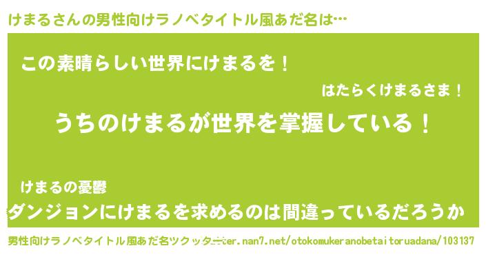 | 意味不明あだ名 | 『住所不定無職けまる(39歳)』 |