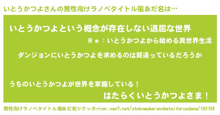| 女子向けラノベタイトル風あだ名 | 『いとうかつよの卵を拾いまして』 |
