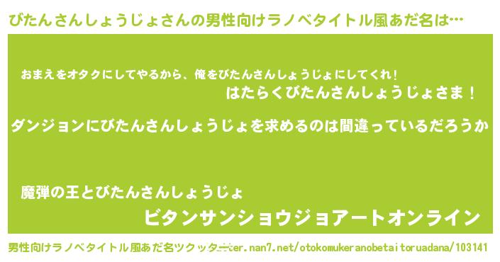 | 女子向けラノベタイトル風あだ名 | 『びたんさんしょうじょは平凡を望む』 |