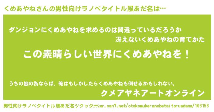 | 意味不明あだ名 | 『住所不定無職くめあやね(47歳)』 |