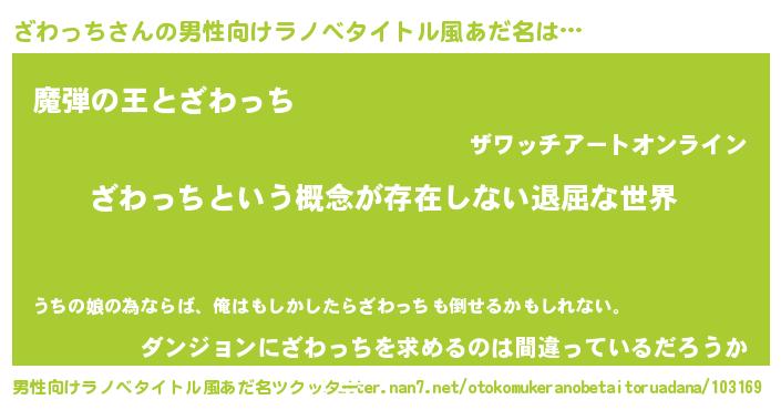 | 胡散臭い通販商品みたいなあだ名 | 『絶対に幸福をもたらす健康食品…その名も「ざわっち」』 |