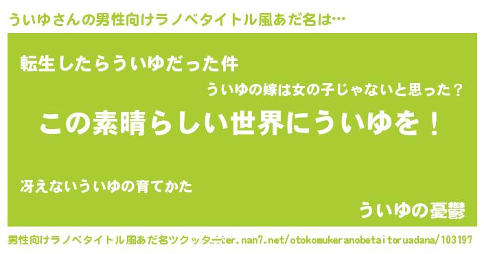 | 女子向けラノベタイトル風あだ名 | 『悪役ういゆに転生したようですが、知った事ではありません』 |