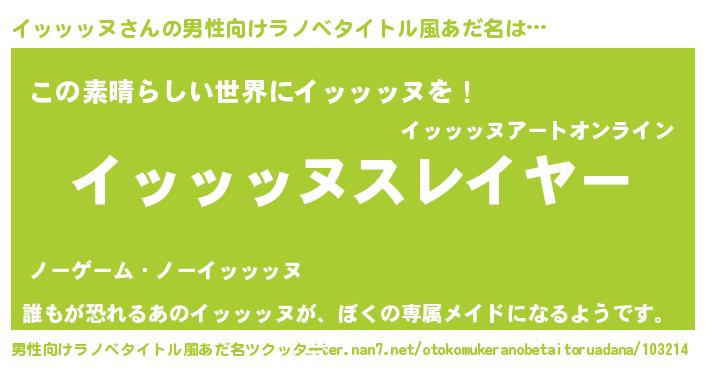 | ヒーロー風カッコイイあだ名 | 『仮面イッダー』『ネオイッッッヌ』 |