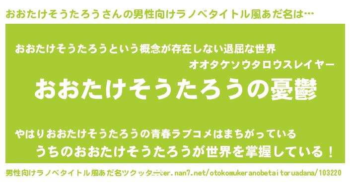 | ヘコむあだ名 | 『おおにー』『おおたけそうたろう(笑)』 |