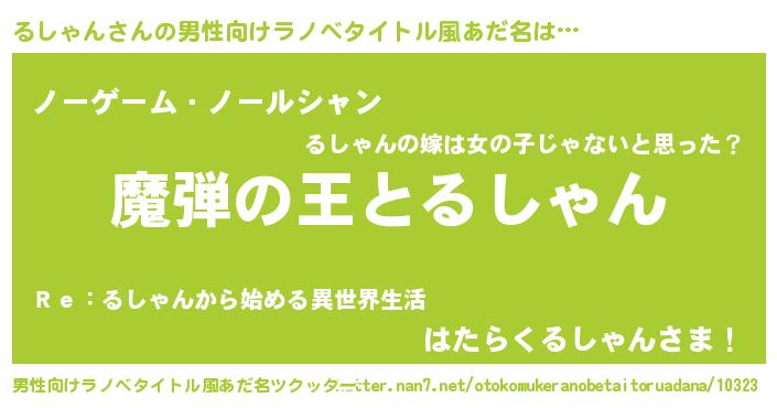 | 女子向けラノベタイトル風あだ名 | 『るしゃんが死なない童話 林檎のるしゃんの診療簿』 |