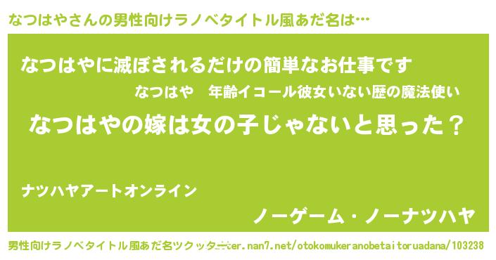 女子向けラノベタイトル風あだ名 | 『なつはや様がみてる』 |