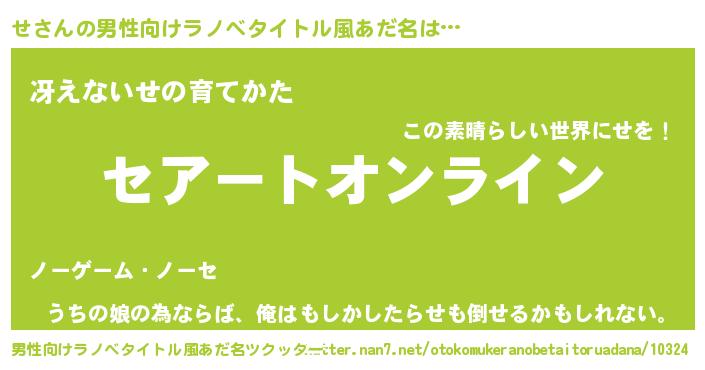 | 胡散臭い通販商品みたいなあだ名 | 『億万長者になれるブレスレット…その名も「せ」』 |