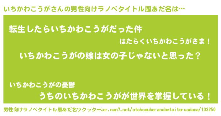 | 欧米人風あだ名 | 『ウサインいちかわこうが』 |