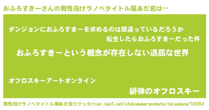 | 胡散臭い通販商品みたいなあだ名 | 『絶対に幸福をもたらす水素水…その名も「おふろすきー」』 |