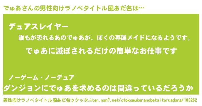 | 女子向けラノベタイトル風あだ名 | 『横柄でゅあと宰相陛下』 |
