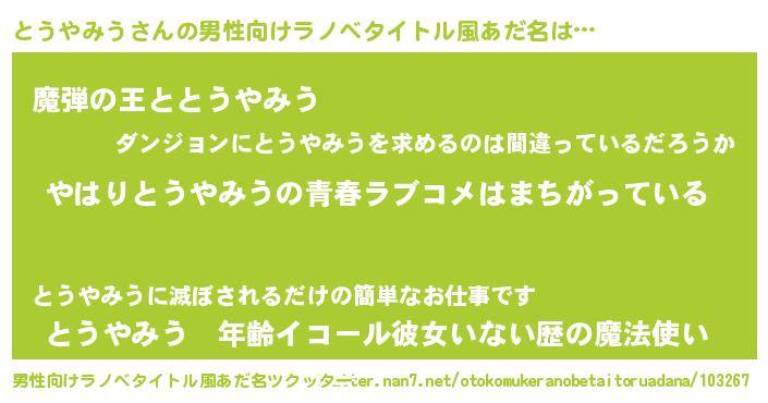 | 胡散臭い通販商品みたいなあだ名 | 『幸せが訪れる高級そうな絵画…その名も「とうやみう」』 |