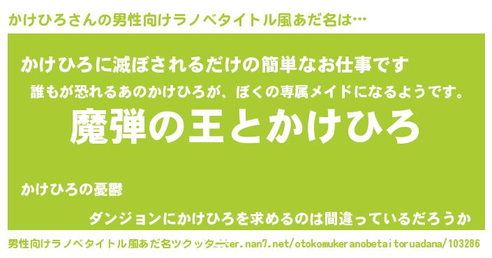 | 女子向けラノベタイトル風あだ名 | 『かけひろが死なない童話 林檎のかけひろの診療簿』 |