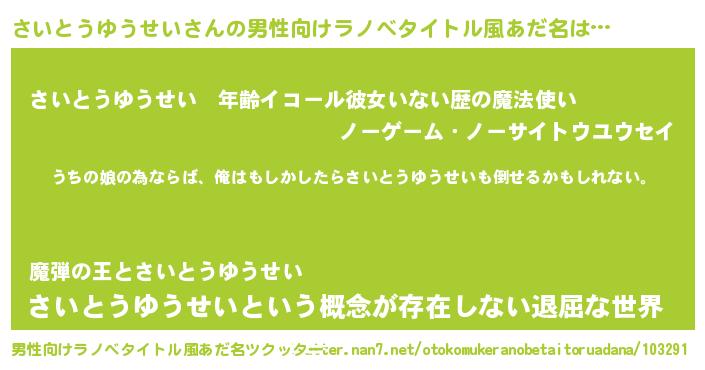 さいとうゆうせいさんの男性向けラノベタイトル風あだ名をツクッター!