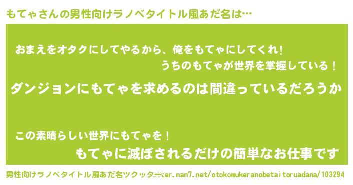 | 女子向けラノベタイトル風あだ名 | 『もてゃの卵を拾いまして』 |