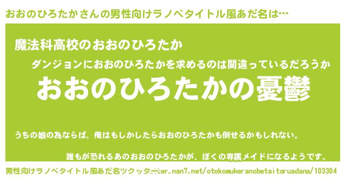 | 女子向けラノベタイトル風あだ名 | 『(仮)おおのひろたかのやんごとなき事情』 |