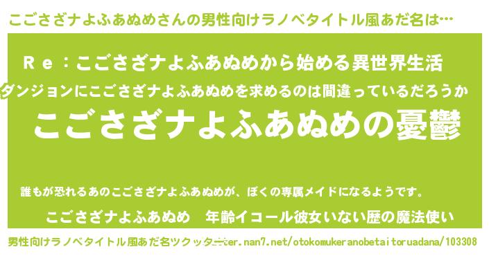 | 胡散臭い通販商品みたいなあだ名 | 『モテモテ間違いなし水晶球…その名も「こごさざナよふあぬめ」』 |