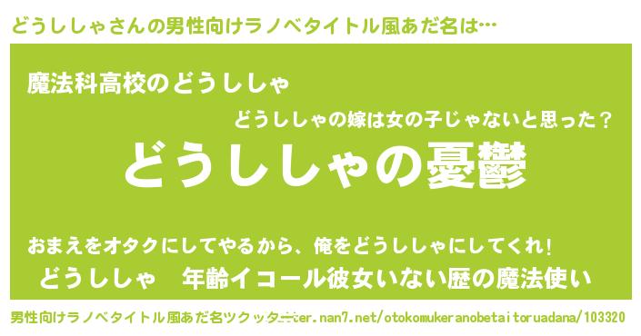 | 女子向けラノベタイトル風あだ名 | 『(仮)どうししゃのやんごとなき事情』 |
