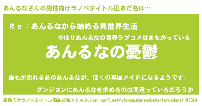 | 胡散臭い通販商品みたいなあだ名 | 『必ず成功するブレスレット…その名も「あんるな」』 |
