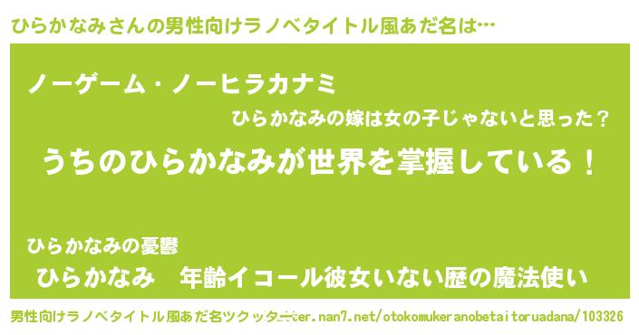 | 伝説のあだ名 | 『救世主となる錬金術士ひらかなみ』 |