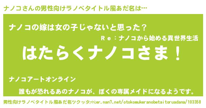 | ヒーロー風カッコイイあだ名 | 『魔戒騎士ナノ』『ネオナノコ』 |