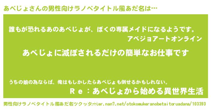 | 胡散臭い通販商品みたいなあだ名 | 『前代未聞の健康食品…その名も「あべじょ」』 |
