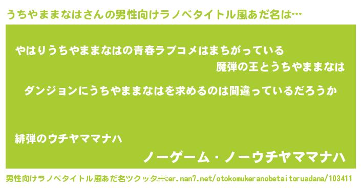 | 女子向けラノベタイトル風あだ名 | 『うちやままなはの卵を拾いまして』 |