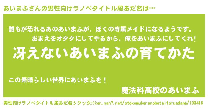 | 意味不明あだ名 | 『永久保存あいまふ』『自称あいまふ』 |