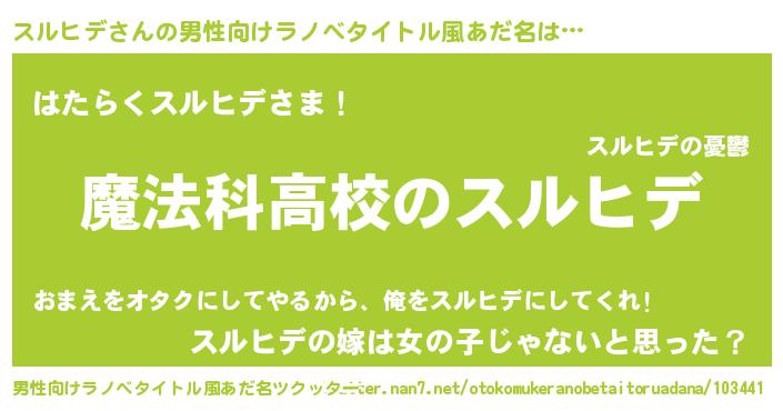 | ヒーロー風カッコイイあだ名 | 『超時空戦士スルヒデ』『魔戒騎士スル』 |