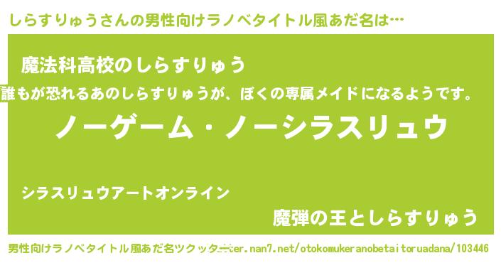 | ヘコむあだ名 | 『しらすりゅう(小並感)』『しらふぇ~』 |