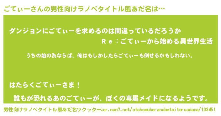 | 胡散臭い通販商品みたいなあだ名 | 『運命の人と巡り会える高級そうな絵画…その名も「ごてぃー」』 |