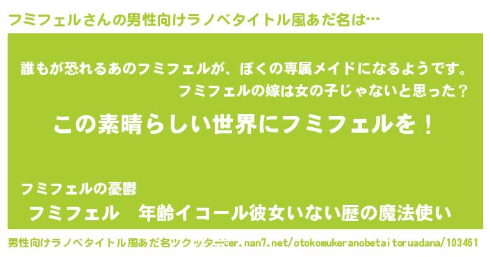 | 意味不明あだ名 | 『住所不定無職フミフェル(9歳)』 |