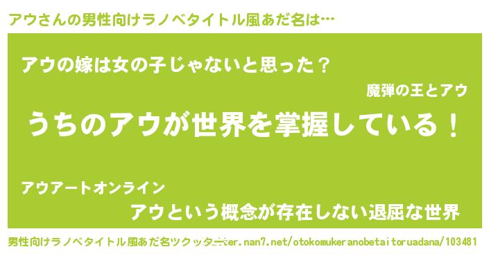 | ピコ太郎風あだ名 | 『アウ史郎』『ピコア郎』『アコ八郎』 |