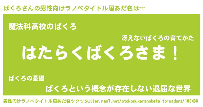 | ヒーロー風カッコイイあだ名 | 『超時空戦士バクロ』『ネオバクロ』 |