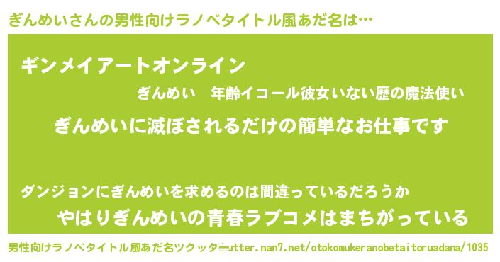 | ファンタジー風あだ名 | 『ギンフェル』『エターナルギンメイー』 |