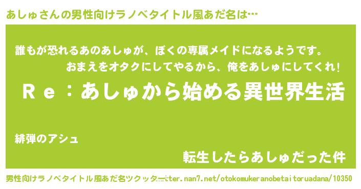 | 意味不明あだ名 | 『自称あしゅ』『永久保存あしゅ』 |