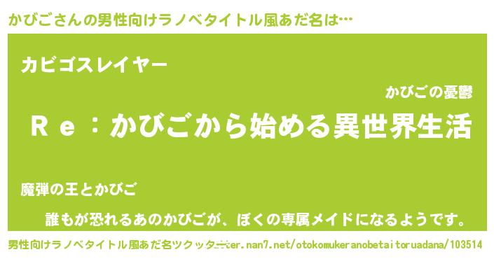 | 女子向けラノベタイトル風あだ名 | 『かびごストレイドッグス』 |