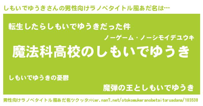 | 女子向けラノベタイトル風あだ名 | 『しもいでゆうきアンティーク』 |