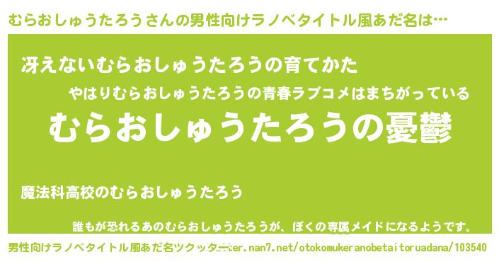 | ヒーロー風カッコイイあだ名 | 『スーパームラオシュウタロウ』 |