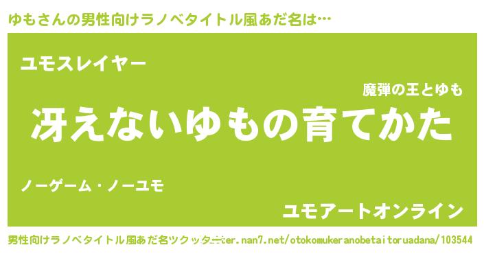 | 女子向けラノベタイトル風あだ名 | 『男装ゆもの憂鬱な任務』『ゆも恋絵巻』 |