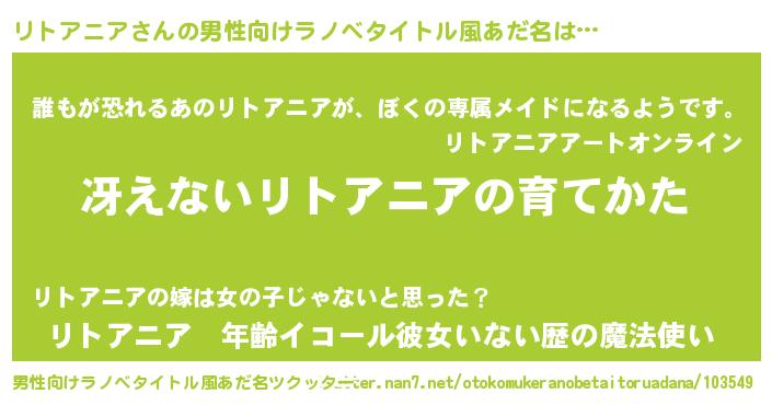 リトアニアさんの男性向けラノベタイトル風あだ名をツクッター!