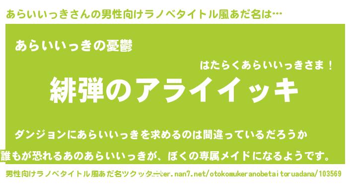 | ヘコむあだ名 | 『あらっふぃ~』『あらいいっき(笑)』 |