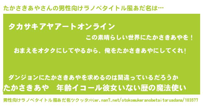 | 女子向けラノベタイトル風あだ名 | 『たかさきあや恋絵巻』 |