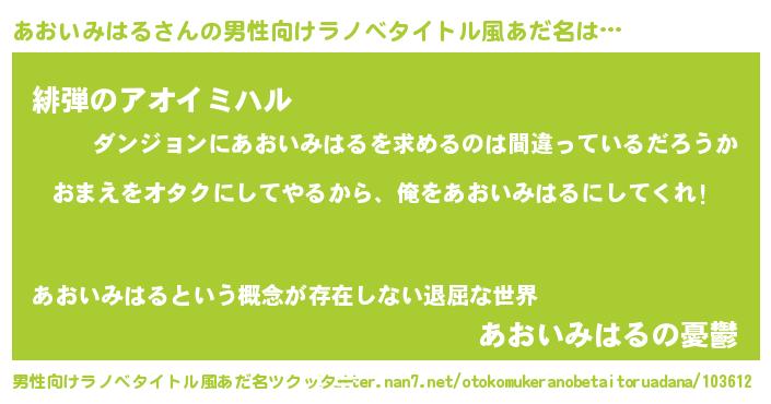 | 女子向けラノベタイトル風あだ名 | 『あおいみはる恋絵巻』 |