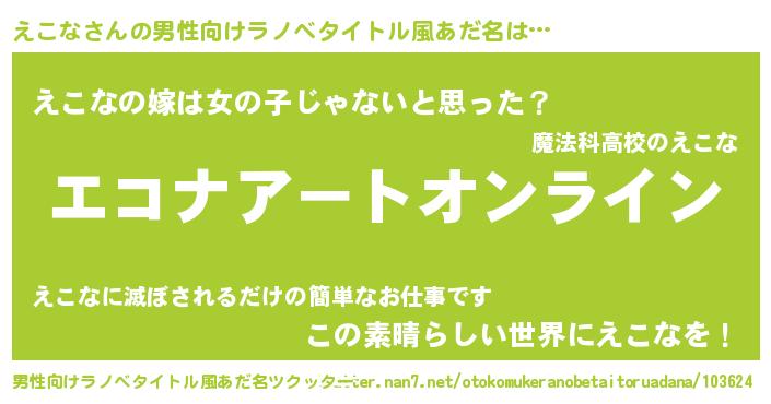 | 胡散臭い通販商品みたいなあだ名 | 『億万長者になれるブレスレット…その名も「えこな」』 |